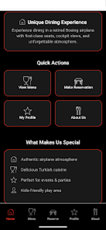 Aviatr Real Online is a lifestyle app designed to enhance your dining experience at AVMaster, an innovative restaurant located in a repurposed airplane in Tekirdağ, Turkey. The app allows users to make reservations, preview the menu, and manage personal dining preferences seamlessly. The restaurant offers a unique atmosphere featuring authentic aircraft components and first-class seating, making it an extraordinary destination for food lovers and aviation enthusiasts alike.
